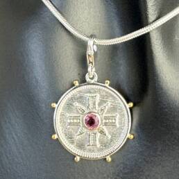 Coin Pendant with Pink Tourmaline semi-precious stone