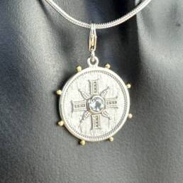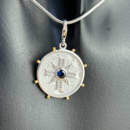 Coin Pendant with Sapphire semi-precious stone