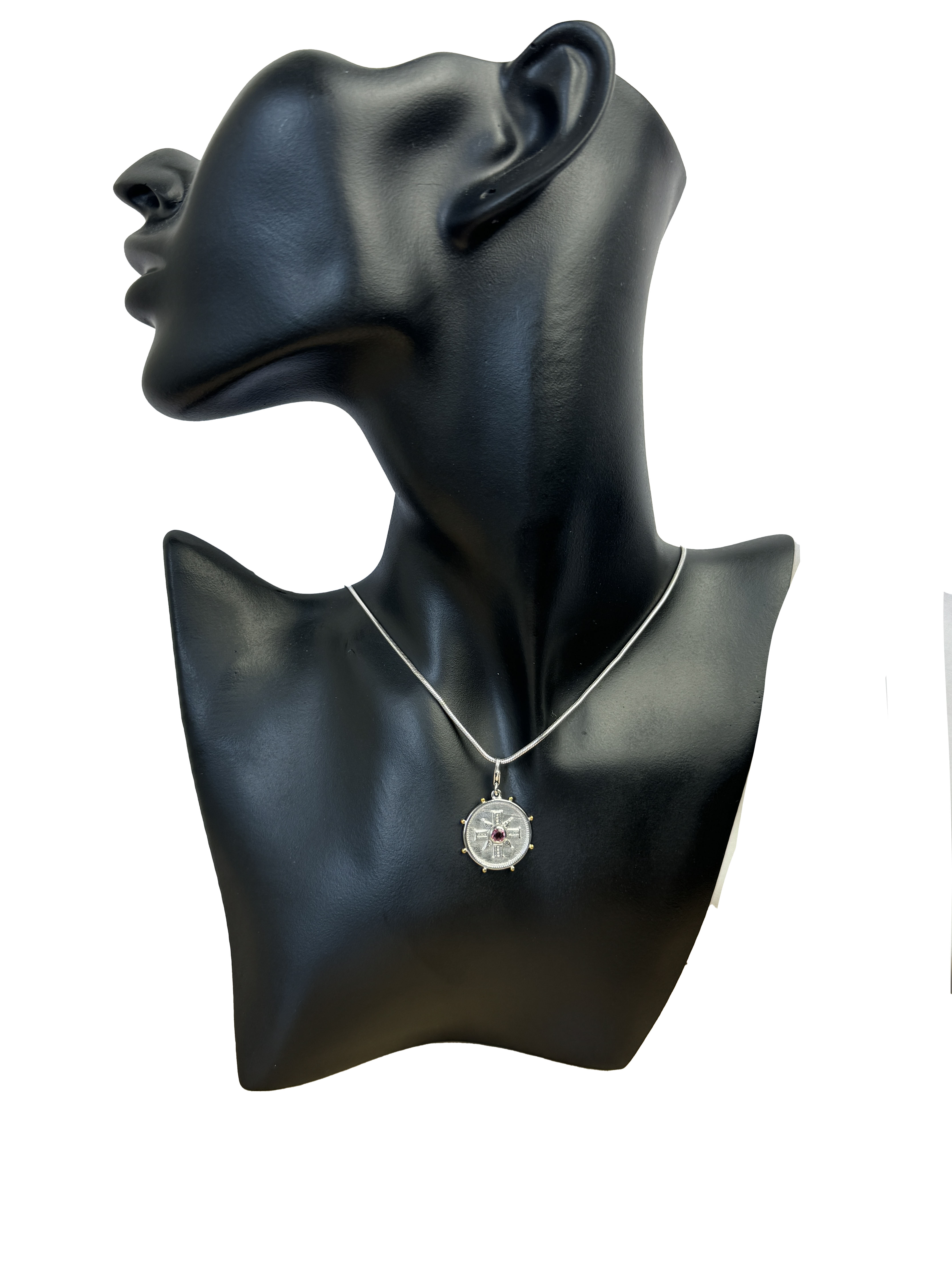 Coin Pendant with Pink Tourmaline semi-precious stone